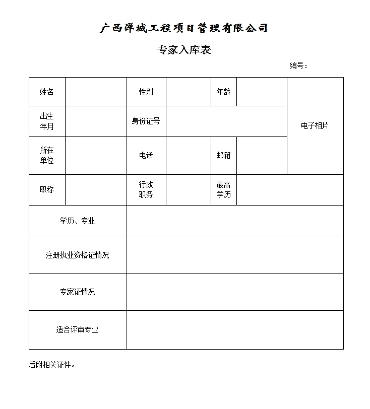 1、填寫評(píng)標(biāo)專家入庫表(詳見附件);